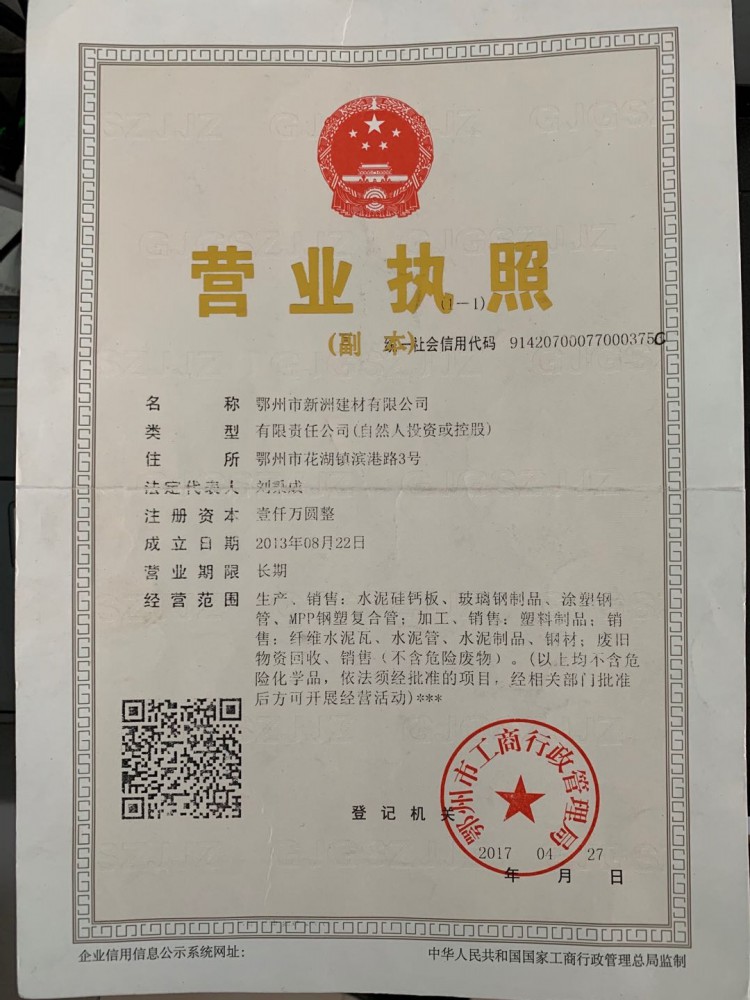 鄂州市新洲建材有限公司是一家生产维伦水泥制品的专业厂家。公司致力于成为电缆管行业领军企业。公司产品有维纶管、石棉水泥管、海泡石管低摩高强维纶水泥电缆管、维纶电缆管、维纶水泥管、高强低摩维纶水泥电缆管电缆管、电缆保护管、海泡石纤维水泥电缆管、维纶纤维水泥电缆保护管。产品全部通过ISO9001国际质量体系认证,是一家高新技术型现代化企业,公司现有员工200余人,其中拥有中高级技术职称的专业技术人员20余人。